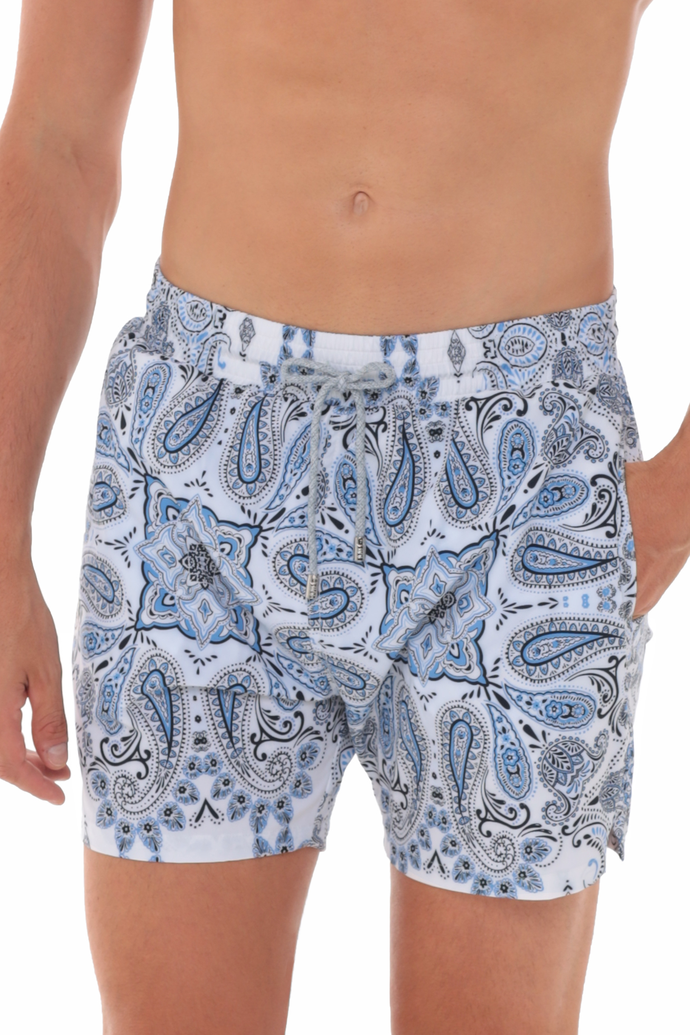Pantaloneta hombre, estampado Lisbon, con malla interna, tela antifluidos, cordón ajustable a la cintura con puntera. Bolsillos laterales y uno posterior con cierre en velcro