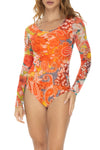Vestido de baño / Entero en malla y manga larga con abertura en la espalda. Ideal para cubrirse del sol y realizar deportes en el agua.