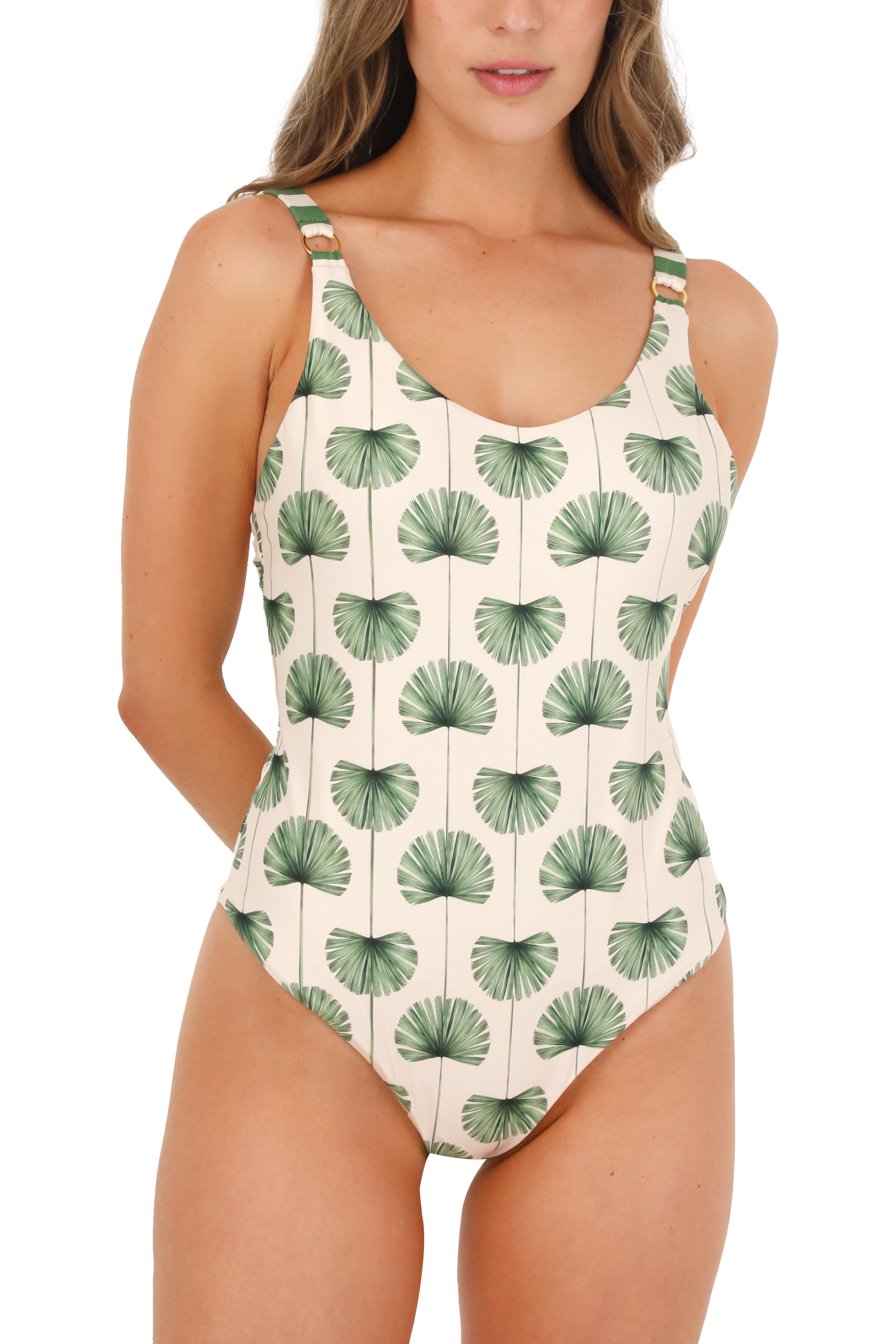 Vestido de baño / Entero, enterizo con estampado localizado de inspiración orgánica que evoca frescura y fluidez a través de formas naturales y armoniosas. Su silueta femenina se adapta al...