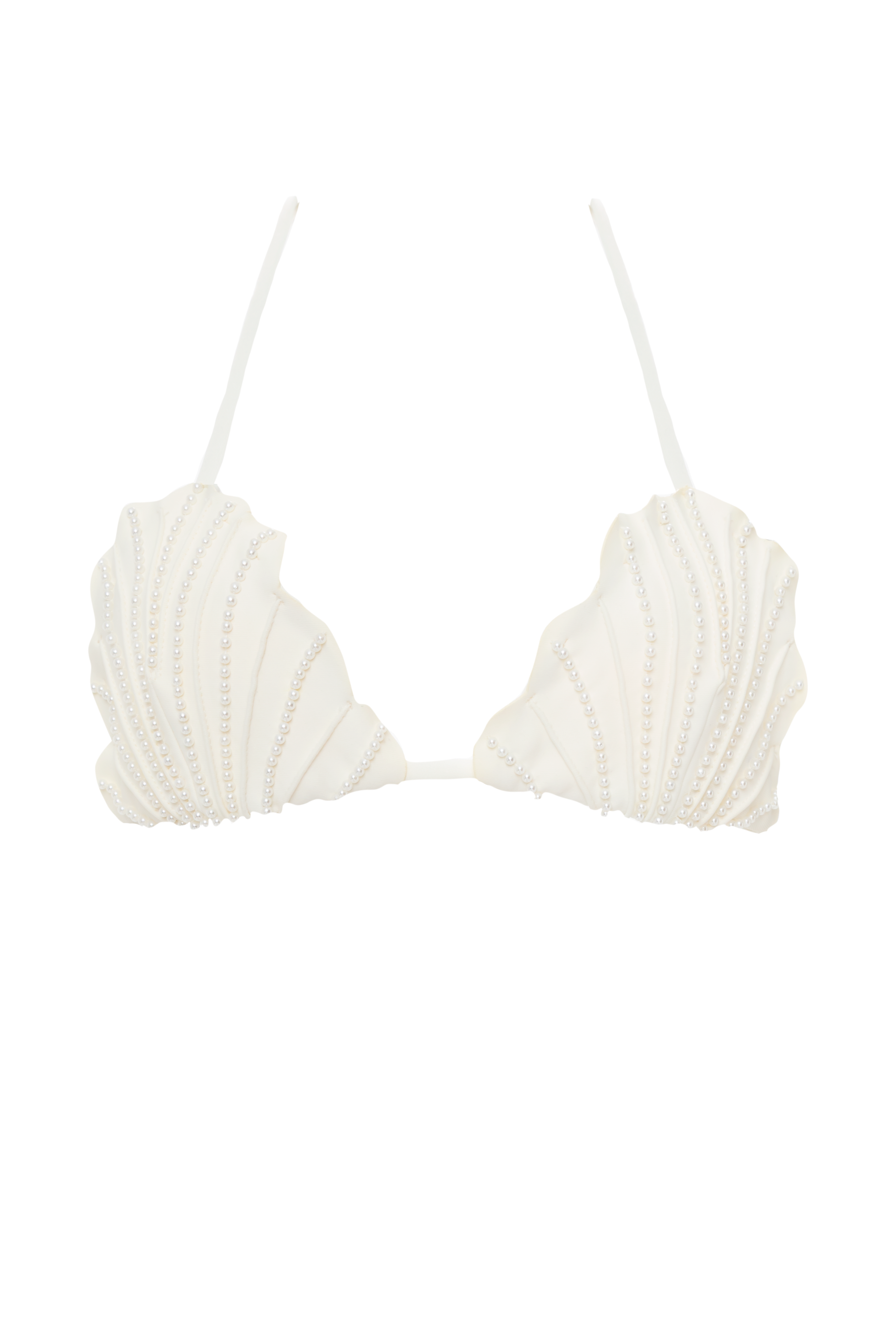 Vestido de baño / Top, top tipo bikini con silueta delicada y detalles de bordado perlado que realzan el busto con elegancia sutil. Una pieza que une sofisticación y feminidad...