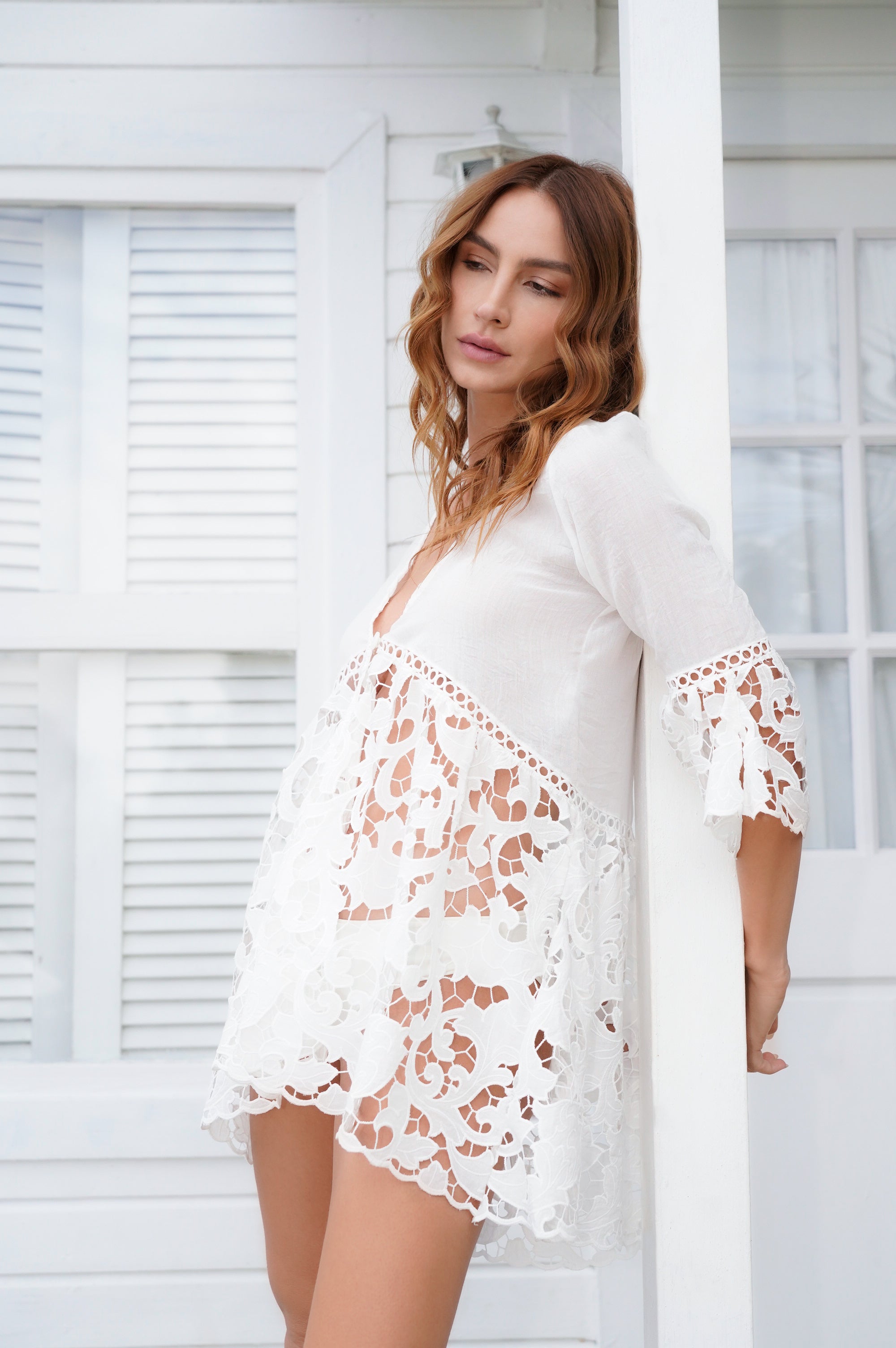 Salida de baño / Cover Up de color marfil y con detalles en la tela que hacen única esta prenda. Puedes usarlo sobre tu bikini en la playa, piscina o...